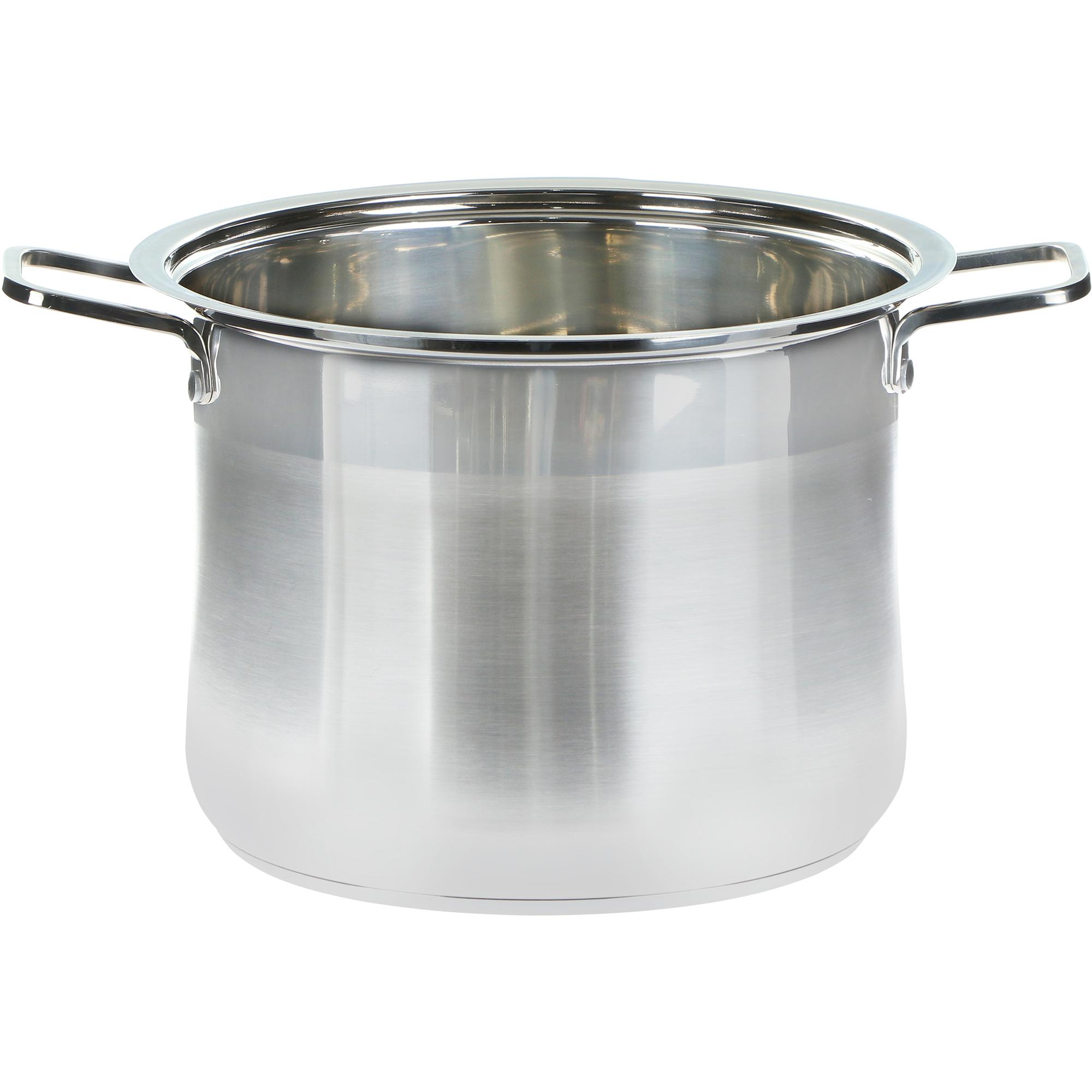 Кастрюля из нержавеющей стали - это настоящий помощник на кухне.Тщательно подобранные детали, соединенные в одну систему, где каждый элемент сделан так, чтобы процесс приготовления блюд стал легче, а продукты не утратили своих питательных свойств. Толщина стенок 0,5 мм, толщина дна 0,5 мм, объем 11 литров. Кастрюля с крышкой из нержавающей стали совместима со всеми плитами.Удобные ручки в обеспечивают надёжное удержание посуды в руках. В комплект входит стеклянная крышка.