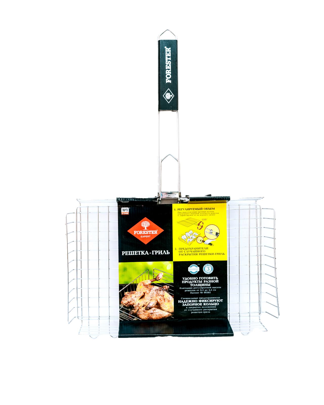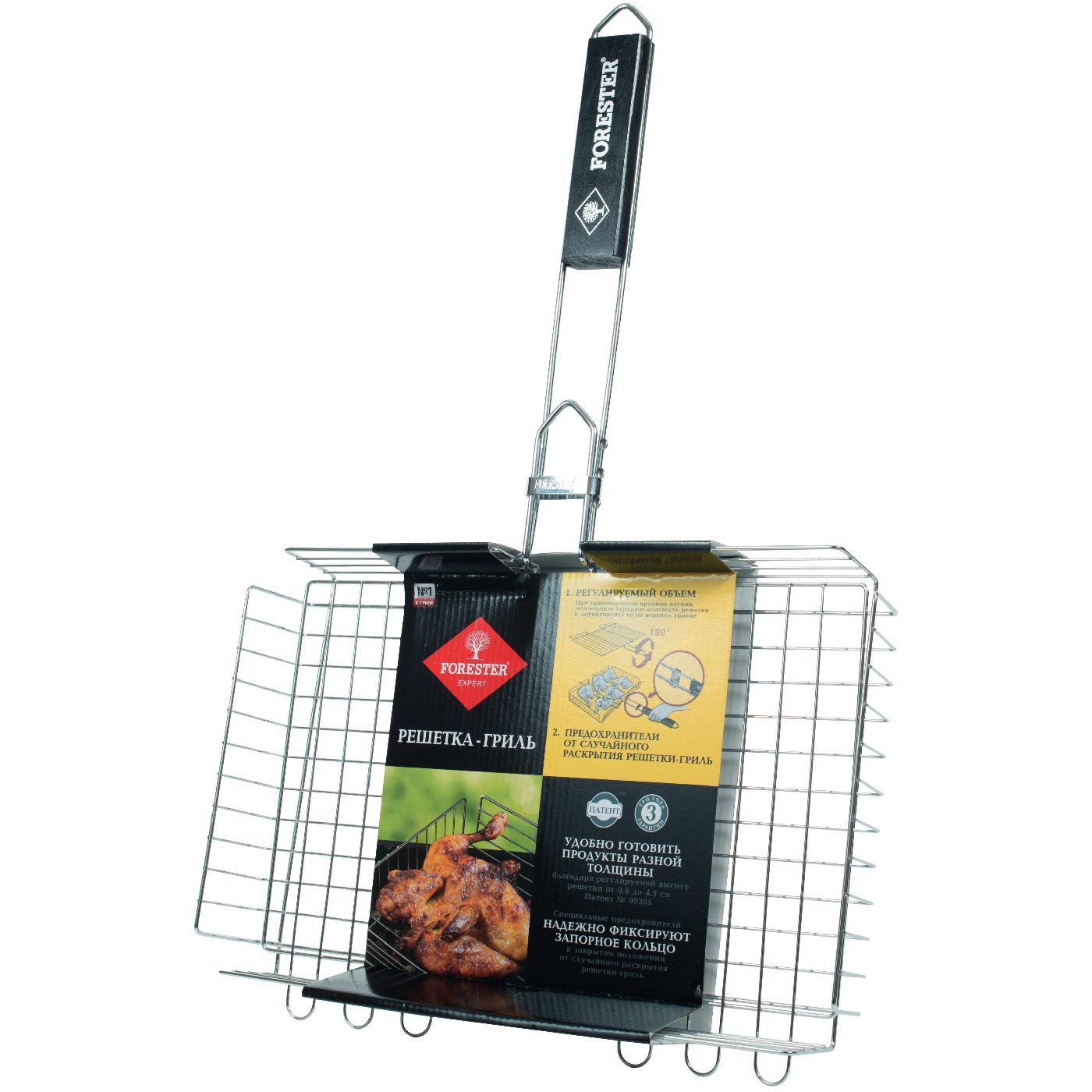 Универсальная решетка-гриль FORESTER изготовлена из стали с коррозионностойким покрытием. Рабочая поверхность жаропрочная - не деформируется от нагревания. Держатель решётки оснащён деревянной рукояткой, защищающей руки от ожогов во время приготовления пищи и обеспечивающей удобный хват при переворачивании на другую сторону. Фиксирующее кольцо предохраняет конструкцию от раскрывания. Решетка для барбекю имеет регулируемый объем, что позволяет запекать продукты разной толщины (от 0.5 см до 4.5 см). Предназначена решетка для приготовления продуктов разной толщины: мяса, птицы, рыбы, овощей на углях.