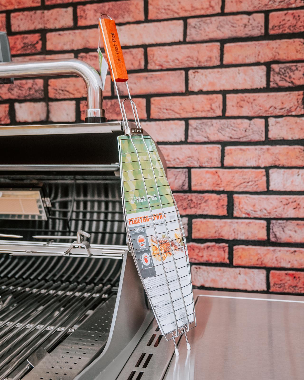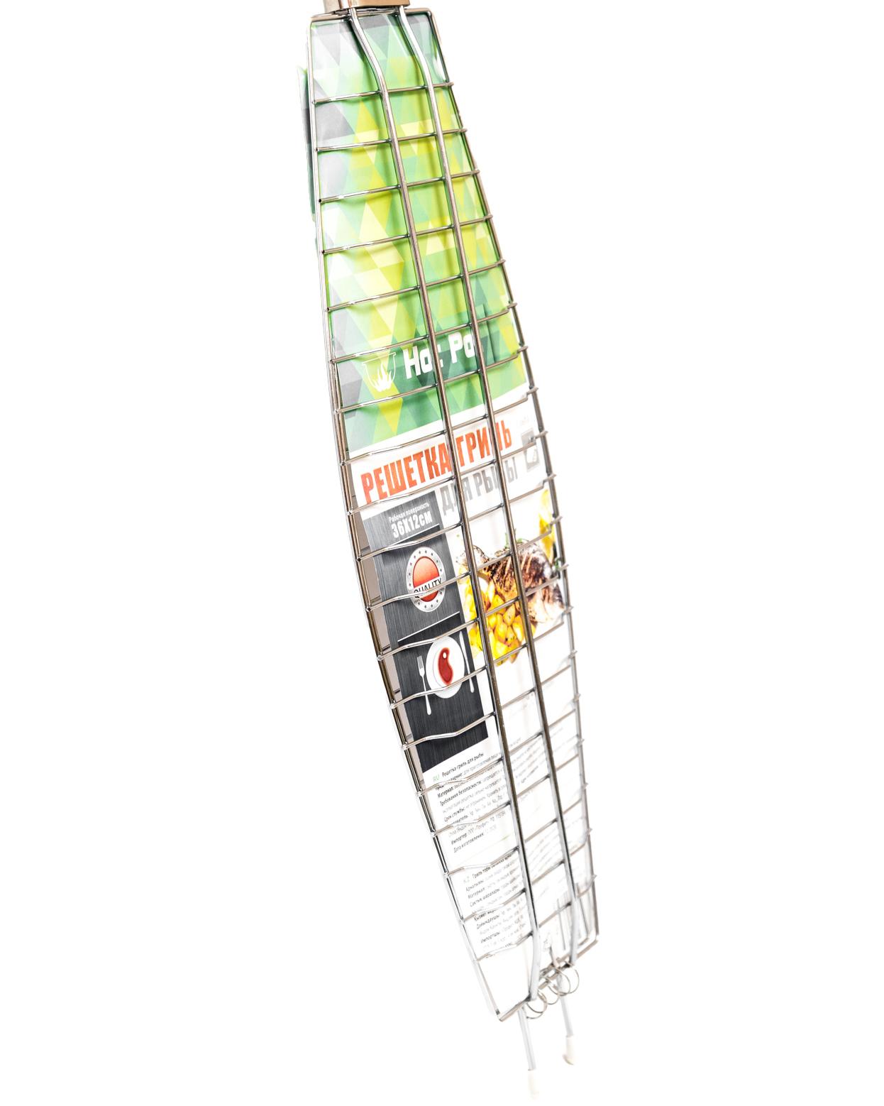 Решетка-гриль для рыбы с удобной деревянной ручкой используется для приготовления рыбы целиком или крупными кусками. Решетка для мангала изготовлена из хромированной стали и снабжена фиксатором. Усики гарантируют изделию повышенную устойчивость в процессе эксплуатации на мангале. Габариты гриль решетки — 36 х 12 х 4 см. Решетка для ароматных блюд на открытом воздухе подарит вам и вашим близким массу положительных воспоминаний!