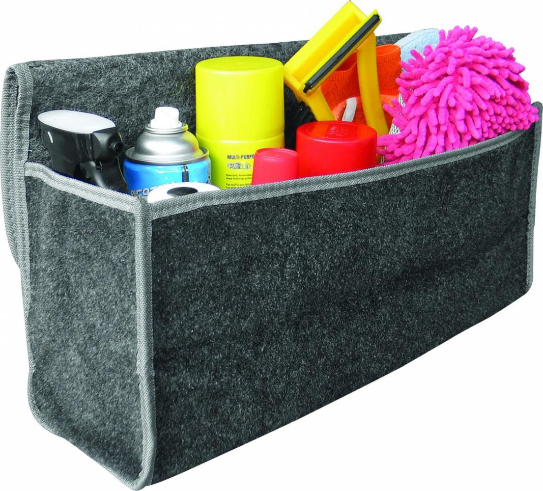Органайзер в багажник AVS "LO-001" - удобный органайзер для компактного размещения автомобильных принадлежностей и инструмента. Выполнена из 100% полиэстера. Материал обладает грязезащитными и водоотталкивающими свойствами. Органайзер отлично крепится к боковой стене и ковру багажника с помощью липучек.