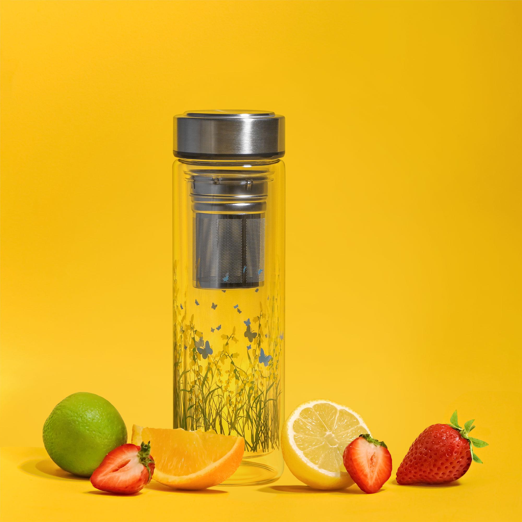 Уникальная посуда для напитков от Everblooming выполнена из боросиликатного стекла с аксессуарами из стали. Двойное стекло обеспечивает оптимальную температуру напитка без нагрева внешних стенок. Бутылка со специальным ситечком обеспечивает правильный температурный режим для заваривания чая и трав без особых усилий и позволяет длительное время держать напиток горячим и ароматным. Преимущества: инновационный дизайн, качественные товары