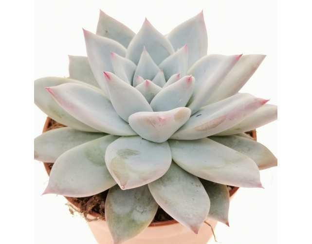 Эхеверия «Колората» (Echeveria colorata) D9см – очаровательный суккулент, отличительной чертой которого является его красивая розетка с листочками серо-голубого окраса. Диаметр розетки достигает до 40 см. Цветет розовыми цветками. Неприхотлив в уходе.