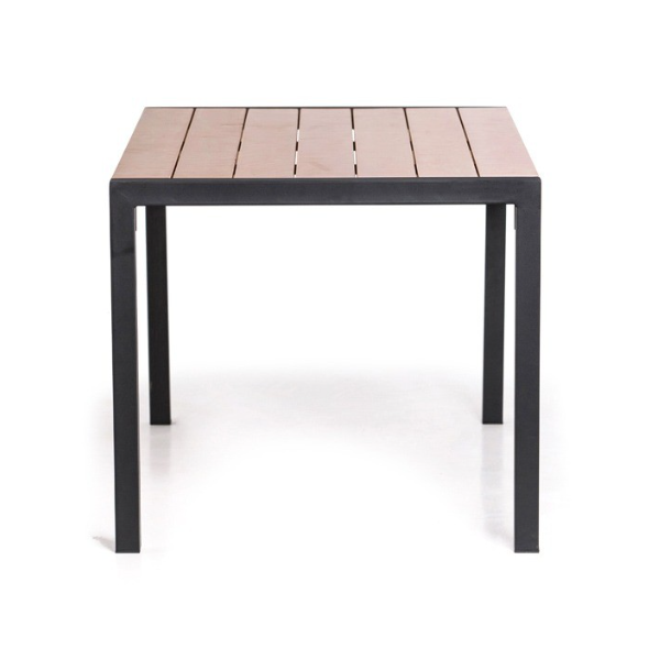 Полноразмерный стол из стали и дерева. Легко собирается, прекрасно дополняет современный ландшафтный дизайн. Каркас окрашен порошковой краской. Древесина обработана антисептиком и покрыта яхтным лаком.