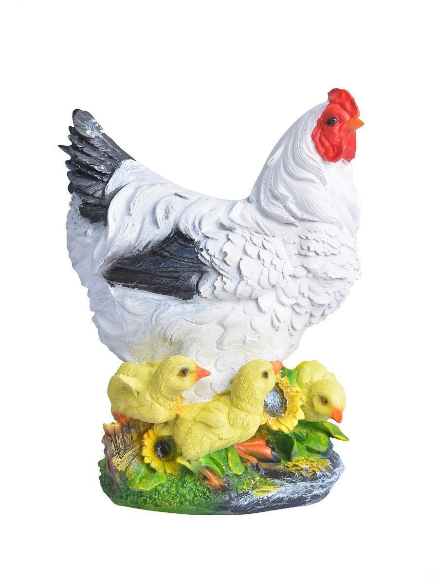 Садовая фигурка Курица с цыплятками на подсолнухе, выполненная из качественного и прочного материала- полистоун. Фигура садовая большая из полистоуна легко переносит любые атмосферные воздействия в виде дождя, града, снега, температуру широкого диапазона: от - 50 до + 180 градусов, не реагирует на высокую или низкую влажность, устойчива к солнечному излучению. Статуэтка декоративная устойчива к ультрафиолетовому излучению, влагостойкая, устойчивость к перепадам температур. К несомненным достоинствам полистоуна можно отнести его экологическую безопасность.