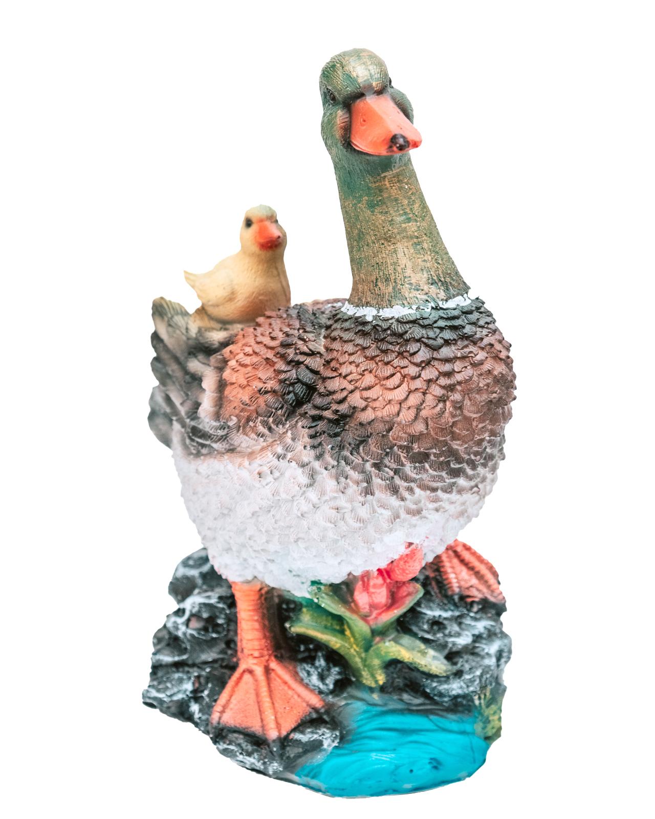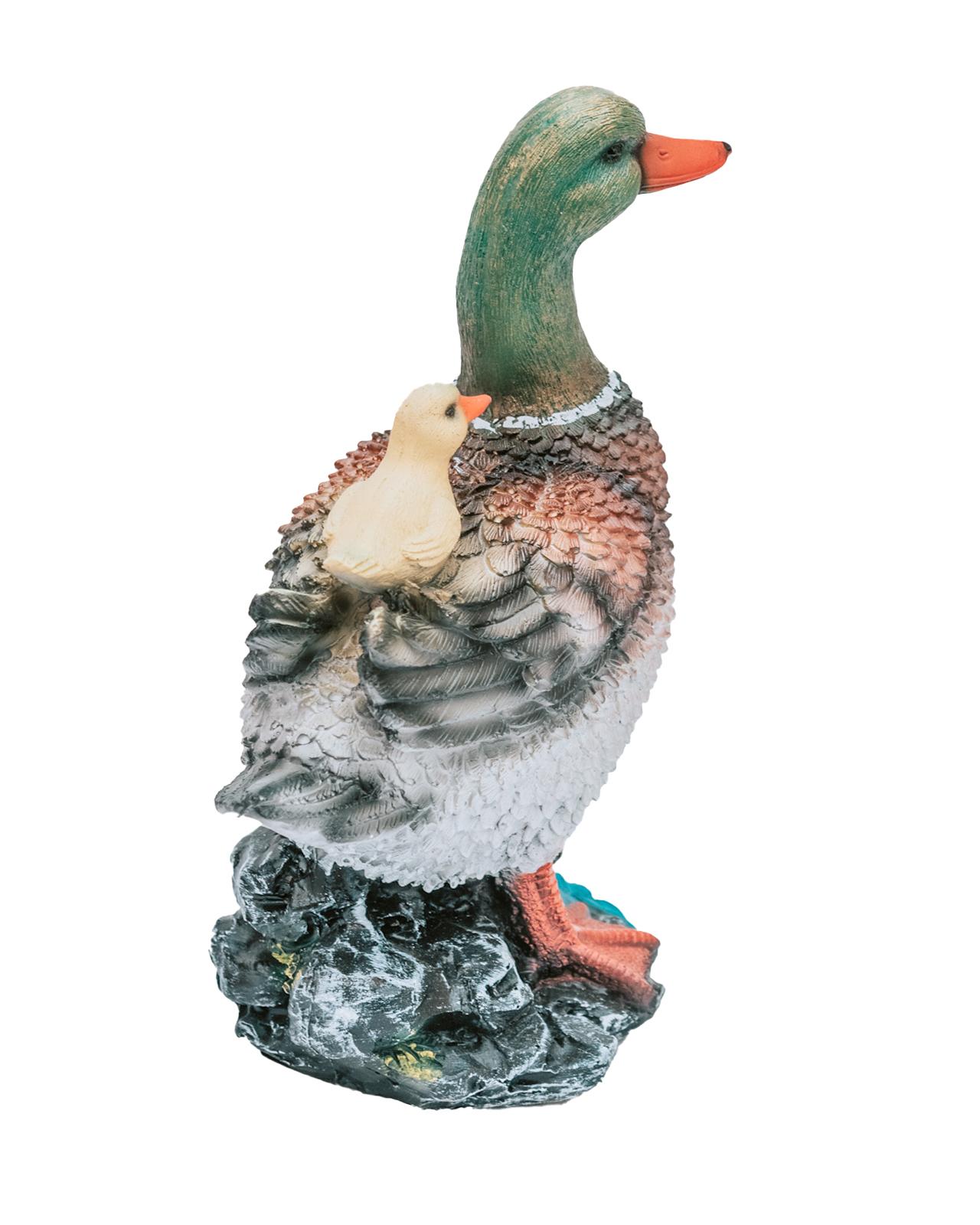 Фигурка садовая «Селезень с птенцом» украсит приусадебный участок и долгие годы будет радовать вас своим присутствием. Такая фигурка на садовом участке станет символом порядка и предусмотрительности. Декоративная фигура, расположенная в траве, придаст окружающему пространству живость и ощущение широты. Реалистичный дизайн помогает создать красочную зону во дворе или саду, которая ежедневно будет поднимать вам настроение. Садовые фигуры устойчивы к любым погодным условиям. Им не страшны ни солнечные лучи, ни влажность, ни перепады температуры. Фигура для сада придаст загородному ландшафту уют и оригинальность.