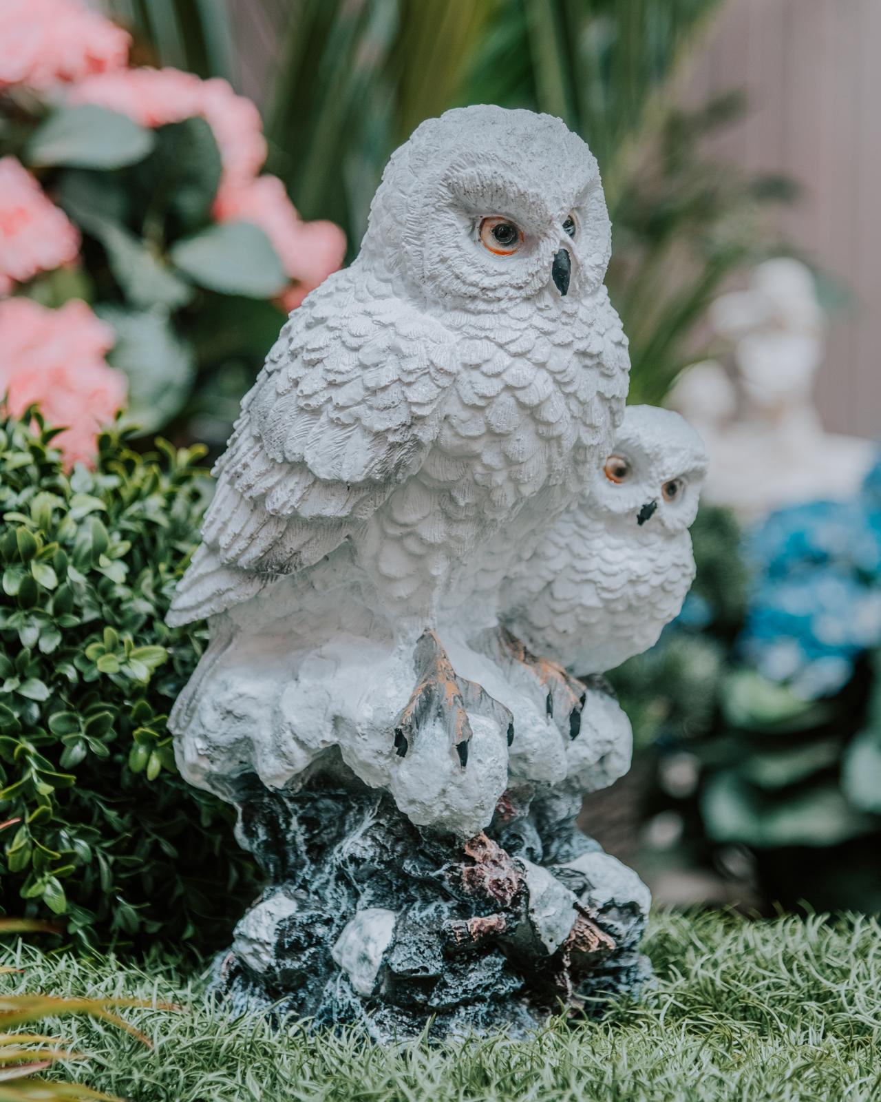 Садовая фигура «Совы полярные» поможет украсить приусадебный участок, придать ему уникальности. Проявите себя в роли ландшафтного дизайнера и с помощью садовых фигур расставьте акценты: например, привлеките внимание к цветочной клумбе или водоёму. Сова - символ мудрости и проницательности — будет оберегать красоту сада. Реалистичный дизайн поможет создать красочную зону во дворе или саду, которая ежедневно будет поднимать вам настроение. Садовые фигуры устойчивы к любым погодным условиям. Им не страшны ни солнечные лучи, ни влажность, ни перепады температуры.