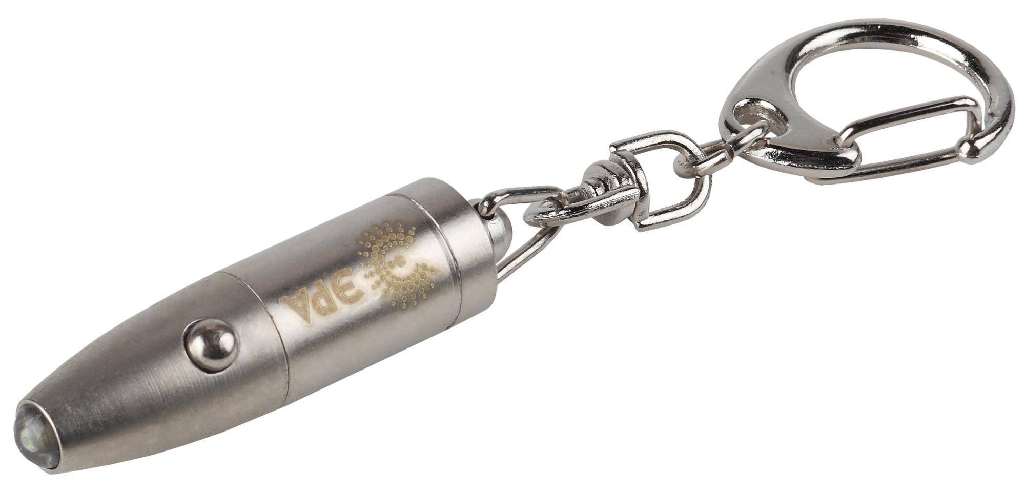 Светодиодный фонарик брелок для ключей ЭРА B26 LED на батарейках в комплекте C0030362 - полезный и практичный аксессуар, миниатюрный брелок с мощным светодиодом. Несмотря на свои маленькие размеры, фонарик светит ярким белым светом, не искажающим цвета, а дальность луча составляет 25 метров. Необычный брелок всего лишь 4 см в длину, то есть вообще не занимает места, но находится всегда под рукой. Для того, чтобы пристегнуть брелок к рюкзаку или ключам используется специальный карабин. Корпус выполнен из анодированного алюминия, что позволяет защитить фонарик от механических повреждений и падений. На самом деле брелоки обычно легко царапаются в сумочке или в кармане, но металл из которого сделан брелок B26 позволяет ему долго сохранять презентабельный внешний вид и не царапаться. Для включения фонарик надо нажать на кнопку, света вполне достаточно, чтобы подсветить что-то при необходимости.