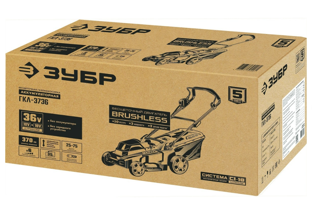 Бесщеточная газонокосилка ЗУБР 36 В ГКЛ-3736 (без АКБ) предназначена для ухода за газоном на частном участке.