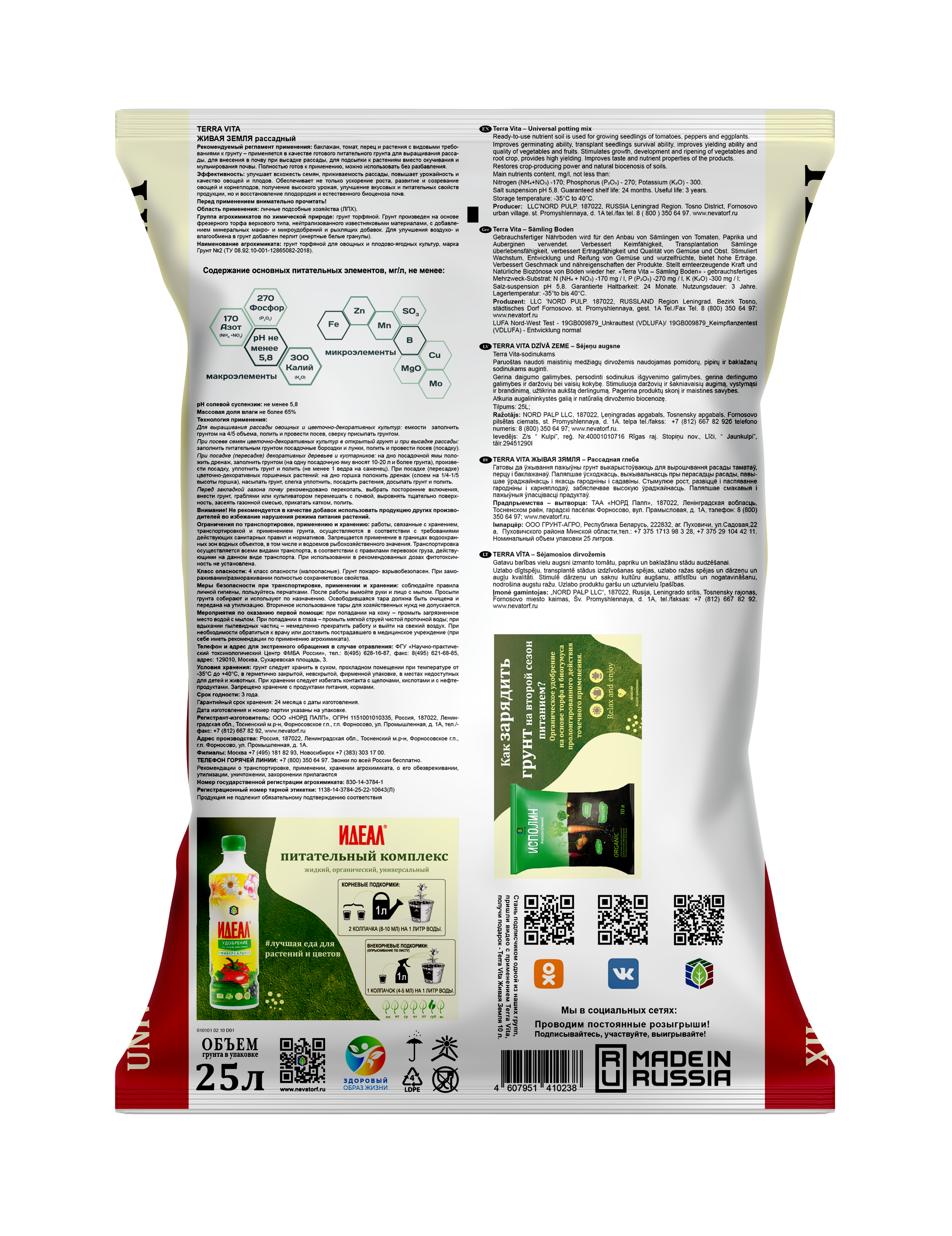 Грунт Terra Vita Живая Земля универсальный 25 л - полностью готовый питательный грунт, применяется для выращивания всех видов овощных, ягодных культур, цветов и рассады. Улучшает всхожесть семян, приживаемость рассады. Повышает урожайность и качество овощей и плодов. Обеспечивает ускорение роста, развития и созревания овощей и корнеплодов, получение высокого урожая. Улучшает вкусовые и питательные свойства продукции. Восстанавливает плодородие и естественный биоценоз почв.
