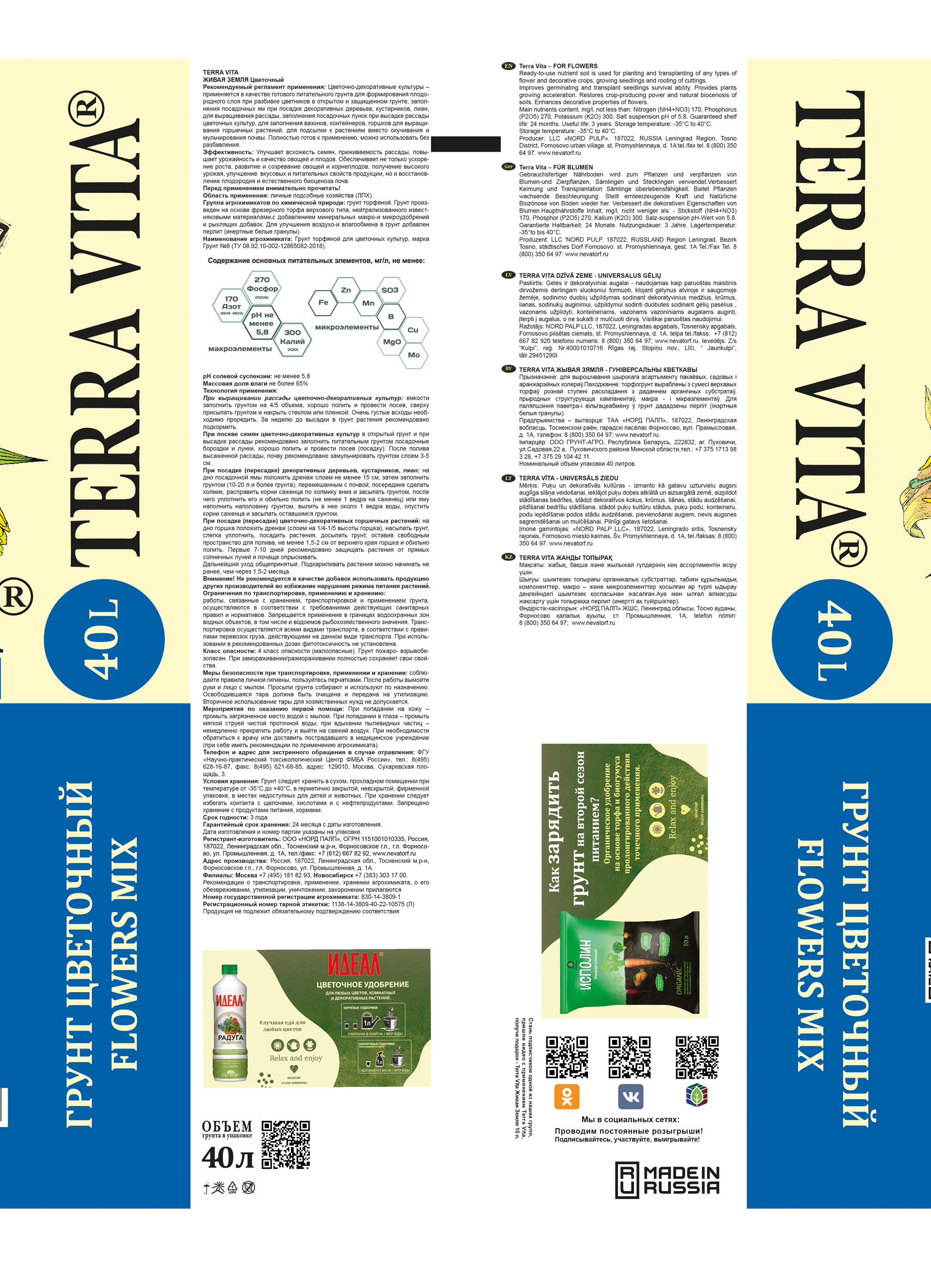 Полностью готовый нейтральный питательный грунт для выращивания овощных, цветочно-декоративных культур (рассады), цветочно-декоративных культур (горшечные) и др.