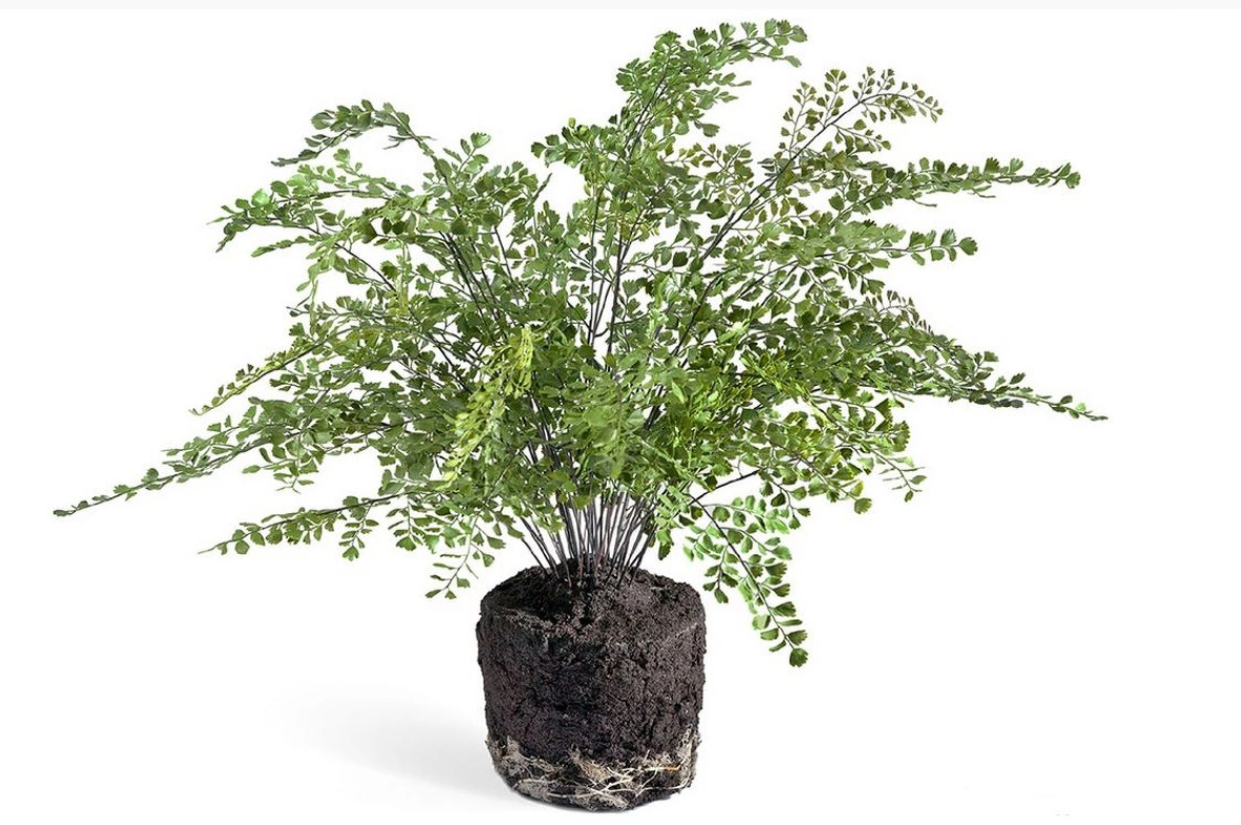 Папоротник Адиантум куст в земле с корнями. Выглядит, как настоящий папоротник. Цвет - натуральный зеленый. Изготовлен в Бельгии. Листва - текстиль с пропиткой. Ствол - высокотехнологичный полимер.