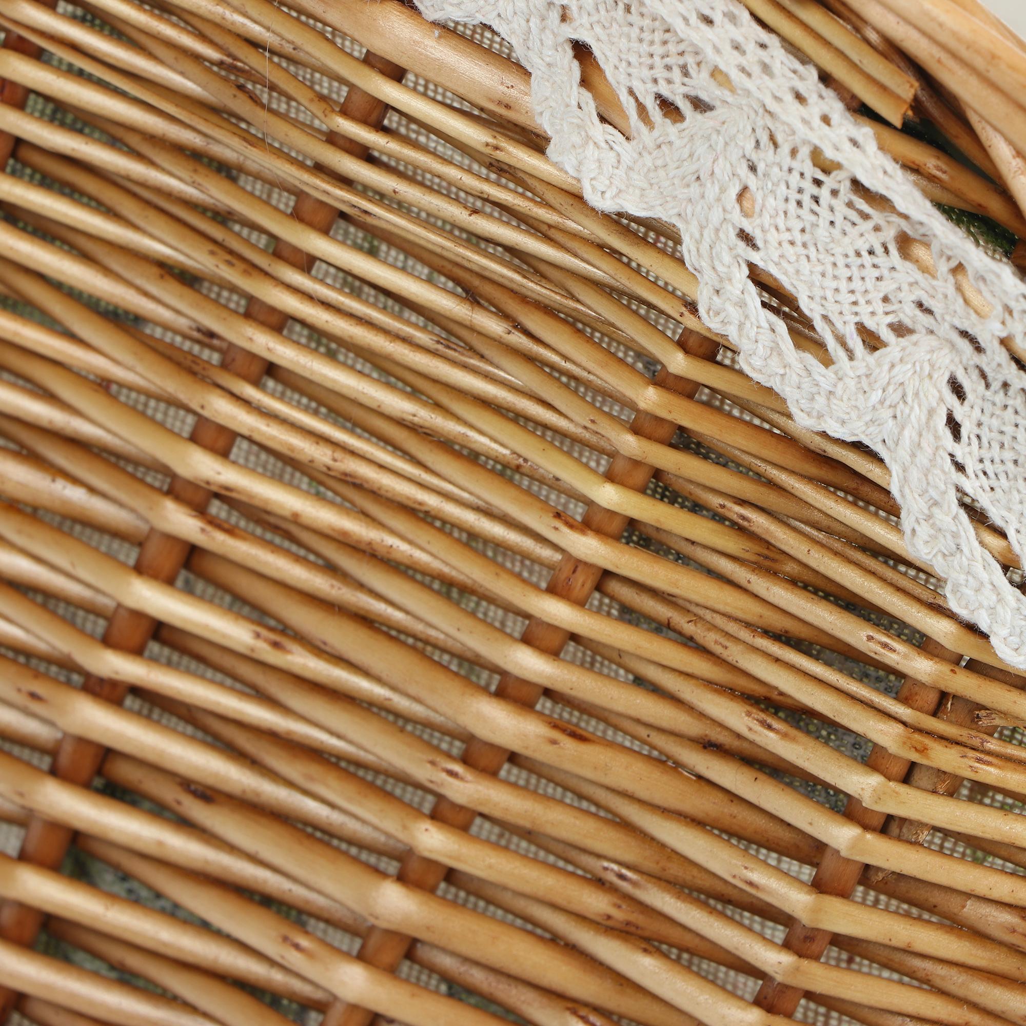 Плетёная сервировочная корзинка для хранения создаст приятную атмосферу в вашем доме! Плетеная корзина может быть использована, как как хлебница, фруктовница, конфетница. Она прочная, вместительная, выполнена из экологичных материалов: ивы, хлопка и полиэстера. С плетеной корзиной можно смело отправлять в гости, положив туда праздничные подарки. Стильную и удобную плетеную корзину с ручкой можно также использовать для хранения продуктов, рукоделья, в качестве декоративного элемента в доме, для поездок на природу.