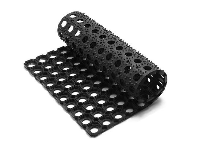 Грязесборный коврик изготовлен из ячеистой резины, он не скользит, отлично защищает помещение от грязи и песка. Коврик не боится низких температур и отлично задерживает снег. Применяется снаружи зданий и в тамбурных помещениях.