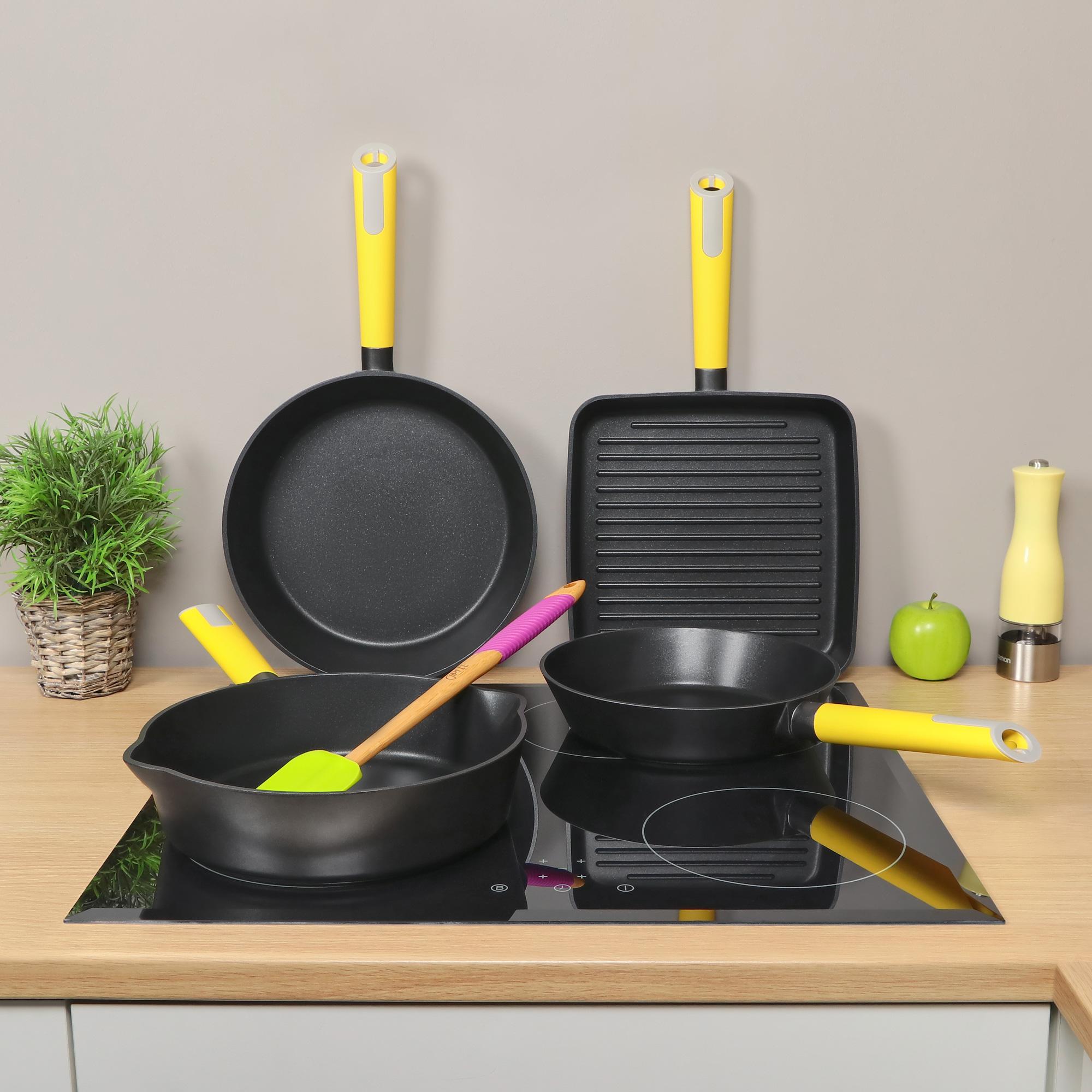Посуда бренда Kitchen star имеет стильный минималистичный дизайн и изготовлена из литого алюминия с антипригарным покрытием высочайшего качества внутри и цветным лаковым снаружи. Все материалы, использованные для создания посуды, экологичны и не содержат вредных веществ.Каменное покрытие внутри и цветное лаковое снаружи устойчиво к царапинам и обладает исключительной долговечностью. Обладает антипригарными свойствами и легко чистится. Рекомендуется ручная мойка для более долгого срока службы, но допускается и мытье в посудомоечной машине. Имеет ферромагнитную пластину, благодаря чему возможно использование на индукционных плитах. Утолщенное дно не позволит вашему блюду пригореть и сохранит первоначальный внешний вид посуды без деформации.