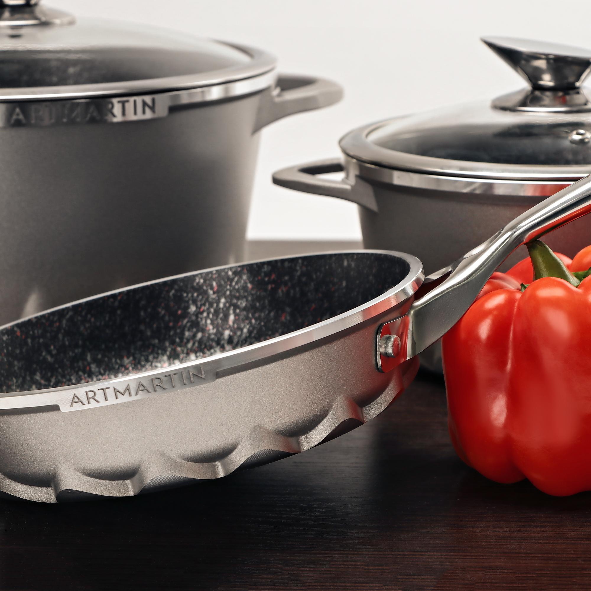 Посуда бренда Kitchenstar из коллекции Artmartin имеет оригинальную форму и изготовлена из литого алюминия с антипригарным каменным покрытием высочайшего качества.