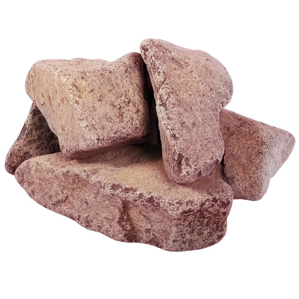 Колотый камень для оснащения банных печей — каменок. Преимущества: Имеет большую теплоемкость: аккумулирует тепло от топки печи и быстро отдает накопленное тепло в помещение парной. При этом камень для банной печи выдерживает высокие температуры и не растрескивается от перепадов температур при поливе водой.