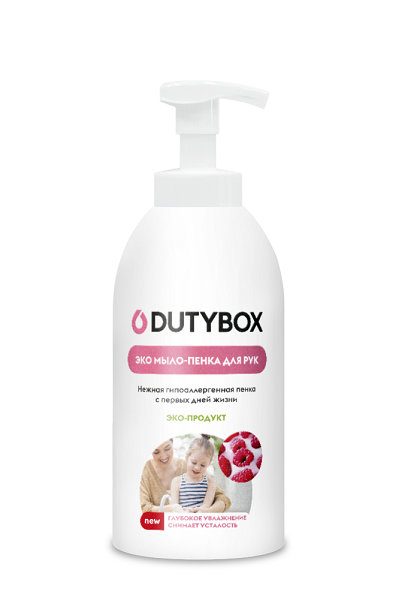 Гипоаллергенное жидкое мыло пенка объем 500 мл, с нежным ароматом малины в йогурте 0+. Стильный диспенсер отлично впишется дома - для ванны, кухни, душа и бани. Жидкое эко мыло, пенка для рук, с удобным дозатором. Туалетное ароматизированное мыло от Дьютибокс - косметика для бережной очистки рук и тела от любых загрязнений, можно использовать как детское жидкое мыло для новорожденных, а также как пену для ванн. Увлажняющее антибактериальное мыло пена сохраняет защитные функции кожи, обеспечивает деликатный уход, очищает не вызывая сухости и раздражения, для людей с чувствительной кожей. Мыло для красоты тела, для лица, шеи, для умывания и подмывания (для интимной гигиены). Многоразовая бутылочка дозатор с готовым мылом пенкой подходит для перезаполнения концентратами капсулами Дьютибокс 109268678. Бережный нейтральный Ph состав 5,5 с натуральными маслами подходит для использования в качестве геля для душа. Используйте в дополнение к вашим ежедневным уходовым средствам, крем, скраб и пилинг. Безопасно для септ