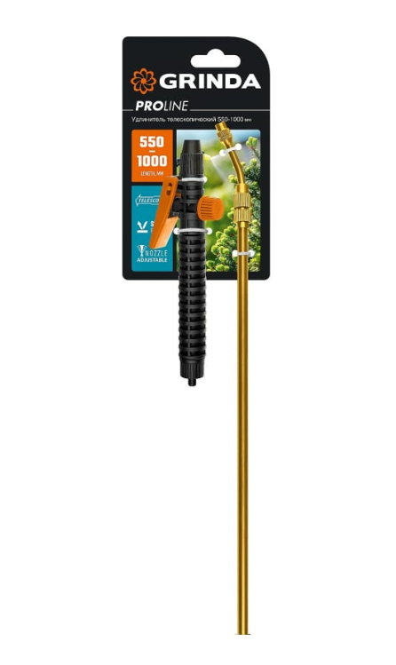 Удлинитель телескопический (латунь; 550-1000 мм) PE-1000 Grinda 8-4251-S_z02 применяется к садовым опрыскивателям марки Grinda арт. 8-425113; 8-4425115; 8-425117; 8-425155; 8-425158, а также с опрыскивателями других производителей, с внутренним диаметром шланга 1/4 дюйма.