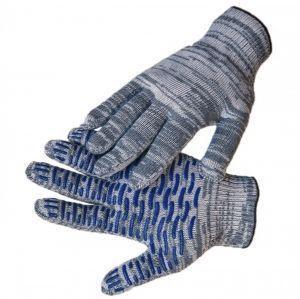Перчатки ХБ с ПВХ, 10 класс, 5 нитей предназначены для защиты рук от загрязнений и повреждений при строительных и сельскохозяйственных работах. Обеспечивают воздухообмен благодаря хлопчатобумажной основе. Манжеты плотно прилегают к запястью. Для крепкого захвата инструмента на ладони и пальцах предусмотрено ПВХ-напыление.