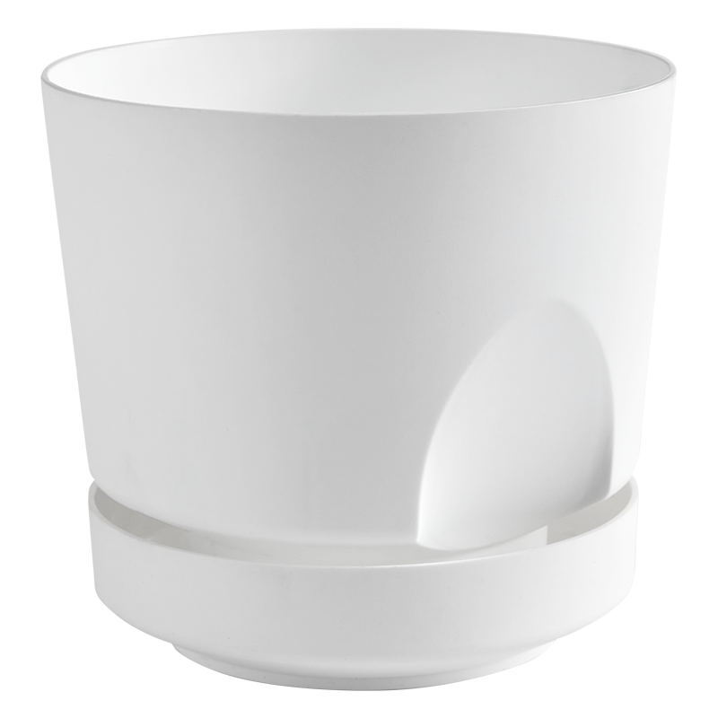 Кашпо bmc КШ-4160 Тренд Белый диам. 12 см, высота 11 см, 0.8 л 068381 предназначен для выращивания небольших комнатных растений. Изделие обладает минималистичным внешним видом, благодаря чему прекрасно впишется в любой интерьер. Поддон собирает излишки жидкости при поливе, что позволяет поддерживать чистоту вокруг растения.