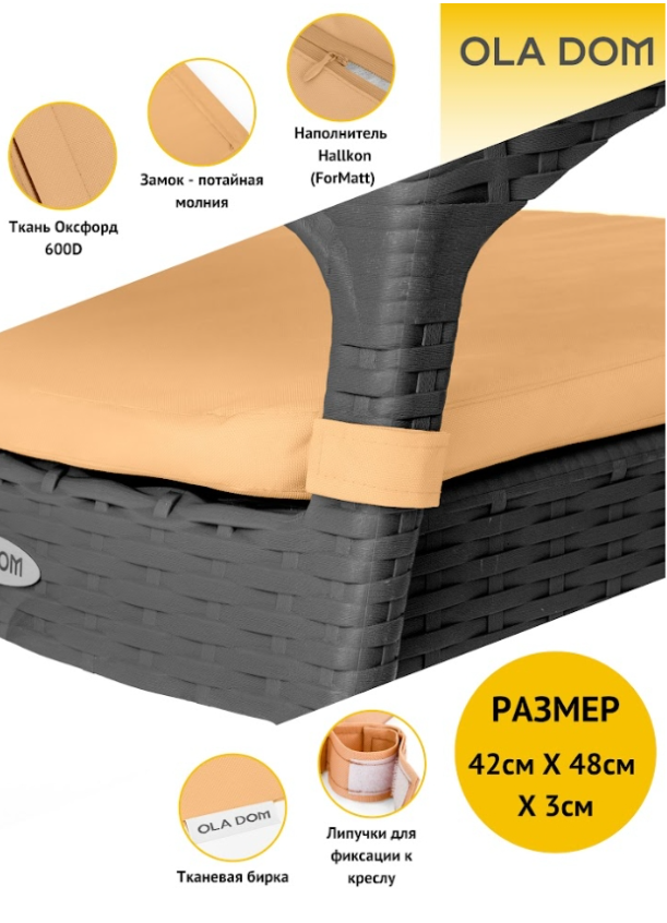 Подушка имеет липучки для фиксации к креслу и тканевую бирк.у
