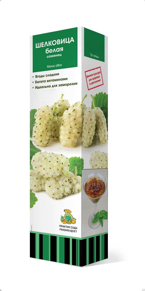 Листопадне дерево с густой широкопирамидальной кроной. Листья крупные летом темно-зеленые, осенью- соломенно-желтые. Имеет съедобные очень сладкие, вкусные и декоративные соплодия белой окраски. Шелковица светолюбива, неприхотлива к почве. Хорошо переносит обрезку. Довольно морозостойка, выдерживает понижение температуры до -30°С. Плоды шелковицы белой отличаются довольно высоким содержанием сахаров (до 20%), крайне низким содержанием кислот (всего 0,1-0,2%). Вкус медово-сладкий без аромата. Обычно шелковица формирует густую шаровидную крону, состоящую из стволов с бурой трещиноватой корой, на которых растут очень интересные листья: молодые они цельные, а по мере взросления становятся лопастными или же выемчатыми. Листья крашены летом в темно-зеленый цвет, а осенью – становятся соломенно-желтыми. Растения шелковицы раздельнополые и ветроопыляемые, отличаются засухоустойчивостью, светолюбивостью и зимостойкостью. Плодоношение обильное и регулярное; ягоды созревают в июне-июле. Урожайность хороша