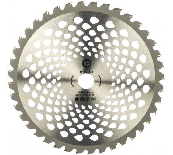 Нож Калибр 00000064677 предназначен для кошения травы с помощью триммера. Оснащен твердосплавными зубьями.