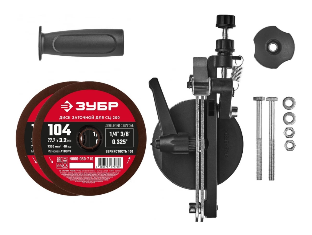 Оборудование укомплектовано двумя заточными дисками разной толщины, благодаря чему можно обрабатывать пильные цепи разных видов.