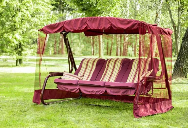 Максимальная нагрузка 320 кг, Каркас труба стальная Ф60х1,5мм; полимерное покрытие; полка - 2 шт; фонарь светодиодный – 1шт. Мягкий элемент: ткань мебельная 100% п/э, плотность 320-360г/м2, наполнитель мягкого элемента формовой поролон (толщиной от 80 до 145 мм), наполнитель подушек - синтепон (полотно полиэфирное объемное). Подушки - 2шт. Тент: тент ткань с водоотталкивающей отделкой 100% п/э плотность 141г/м2, с противомоскитной сеткой (полотно гардинное основовязаное 100% п/э плотность 39г/м2) - фиксация сетки на тканевом тенте осуществляется с помощью горизонтальных и вертикальных застежек – «молний». Регулировка спинки: для раскладывания спинки поднимается ручка трансформации. Фиксаторы, расположенные на спинке, защелкиваются на дуге. Вес 68 кг.