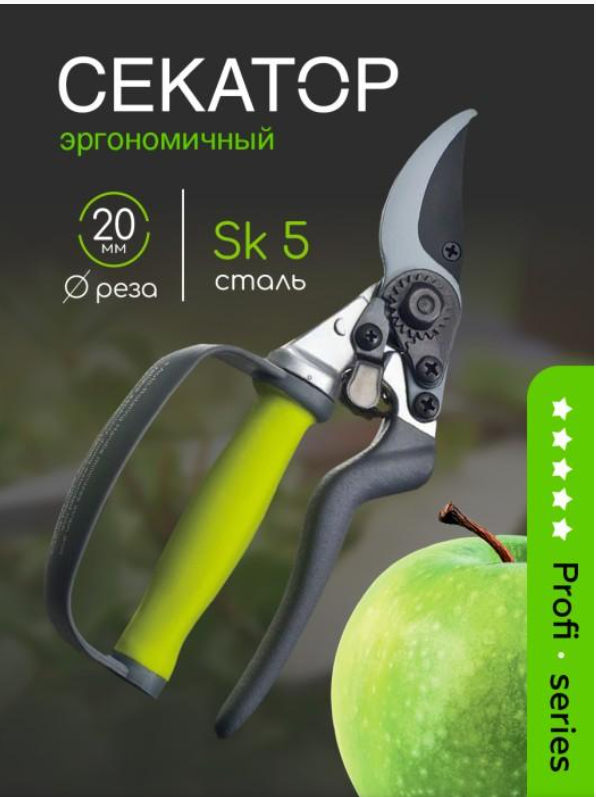 - Размер секатора 215 мм, легко ложится даже в широкую ладонь.