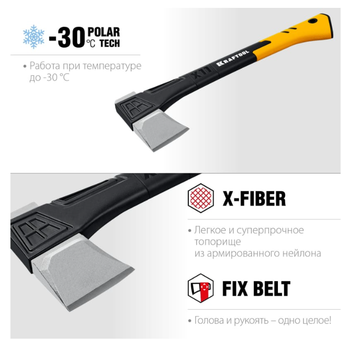Топорище выполнено из армированного нейлона X-Fiber - легкого и прочного материала. Выпуклый клин обеспечивает эффективность в работе и легкое извлечение из бревна.