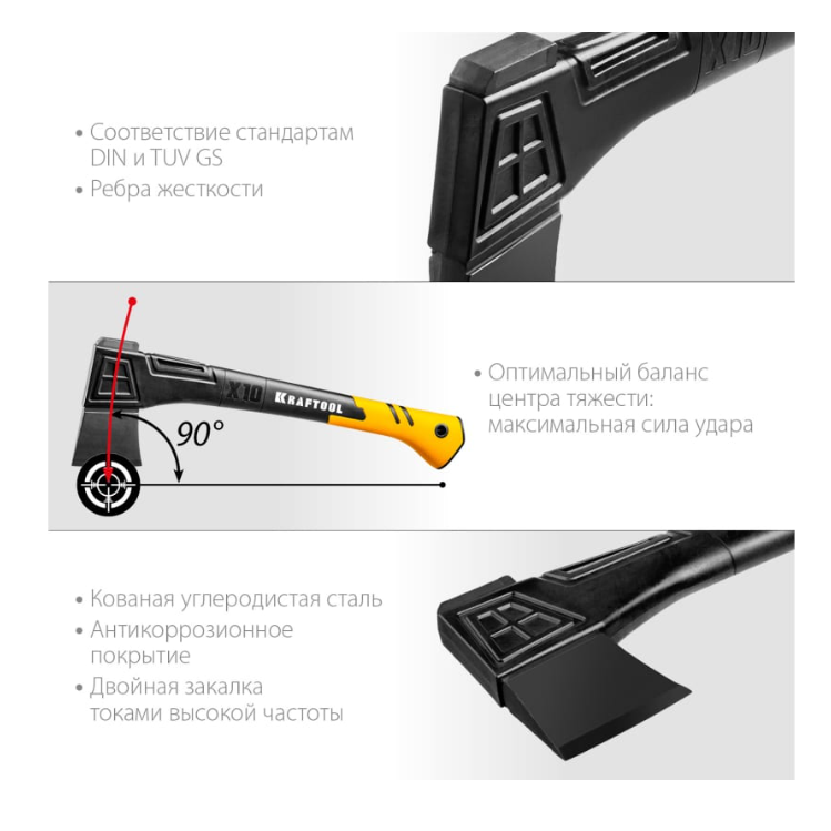 Универсальный топор в чехле KRAFTOOL X10 750/1000 г, 450 мм 20660-10 - это профессиональный надежный инструмент немецкого производства.