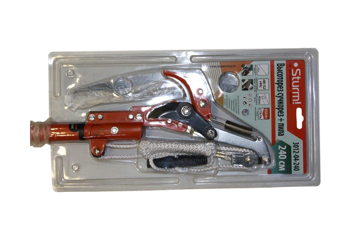 Высоторез сучкорез + пила Sturm 3012-04-240 используется для ухода за садовыми деревьями.