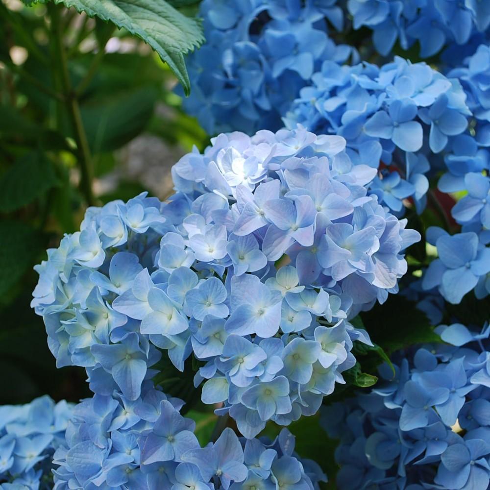 Никко Блю - невысокий кустарник. Цветки голубые, собраны в крупные шаровидные соцветия 15-30 см в диаметре.