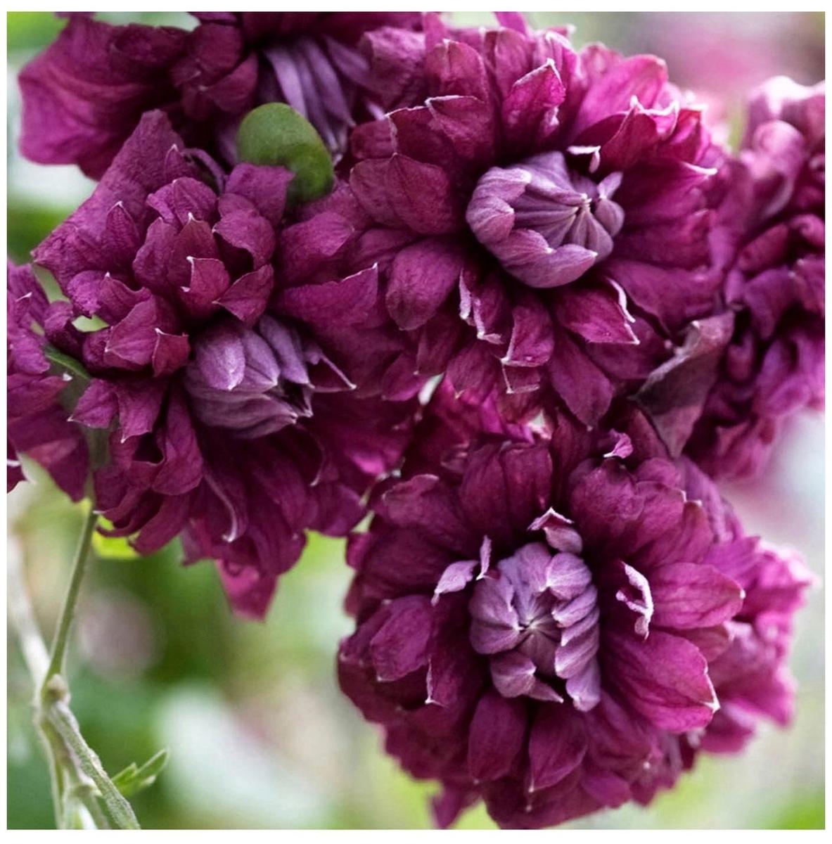 Относится к группе Viticella. Цветки махровые, пурпурно-красные, распускаются постепенно, некрупные, 6-9 см в диаметре. Сохраняют декоративный вид на растении до 25 дней. Цветет с июня по сентябрь на побегах текущего года. Высота 3 м. Обрезка сильная, над 2-3 парой почек (20-50 cм) от земли.