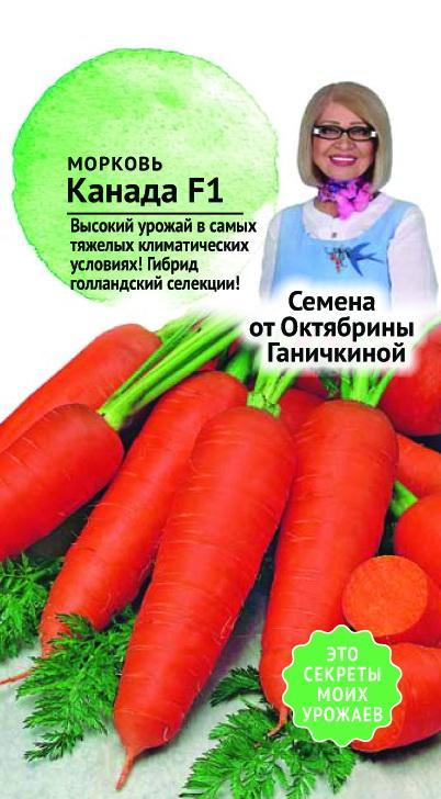 Семена ОКТЯБРИНА ГАНИЧКИНА Морковь Канада F1 0.3 г 120151 – среднепоздний гибрид голландкой селекции, от всходов до уборки урожая 120-130 дней. Корнеплод длинный, конической формы, со слегка заостренным кончиком, длиной 18-23 см, массой 130-170 г. Сердцевина и кора ярко-оранжевого цвета. Мякоть сочная, плотная, с повышенным содержанием каротина. Вкусовые качества отличные. Гибрид хорошо растет на тяжелых глинистых почвах. Гибрид отличается высокой урожайностью, выход товарной продукции 93%, прекрасно хранится. Рекомендуется для потребления в свежем виде, переработки и длительного хранения. Агротехника: Морковь предпочитает легкие суглинистые и супесчаные почвы. Семена высевают в конце апреля – начале мая рядками с междурядьем 15-20 см. Глубина посева – 1.5-2 см. Прореживание проводят через 2 недели после появления всходов, оставляя расстояние между растениями 5-7 см. Дальнейший уход заключается в прополке, подкормках, поливе и борьбе с вредителями. Уборку урожая начинают в сентябре.