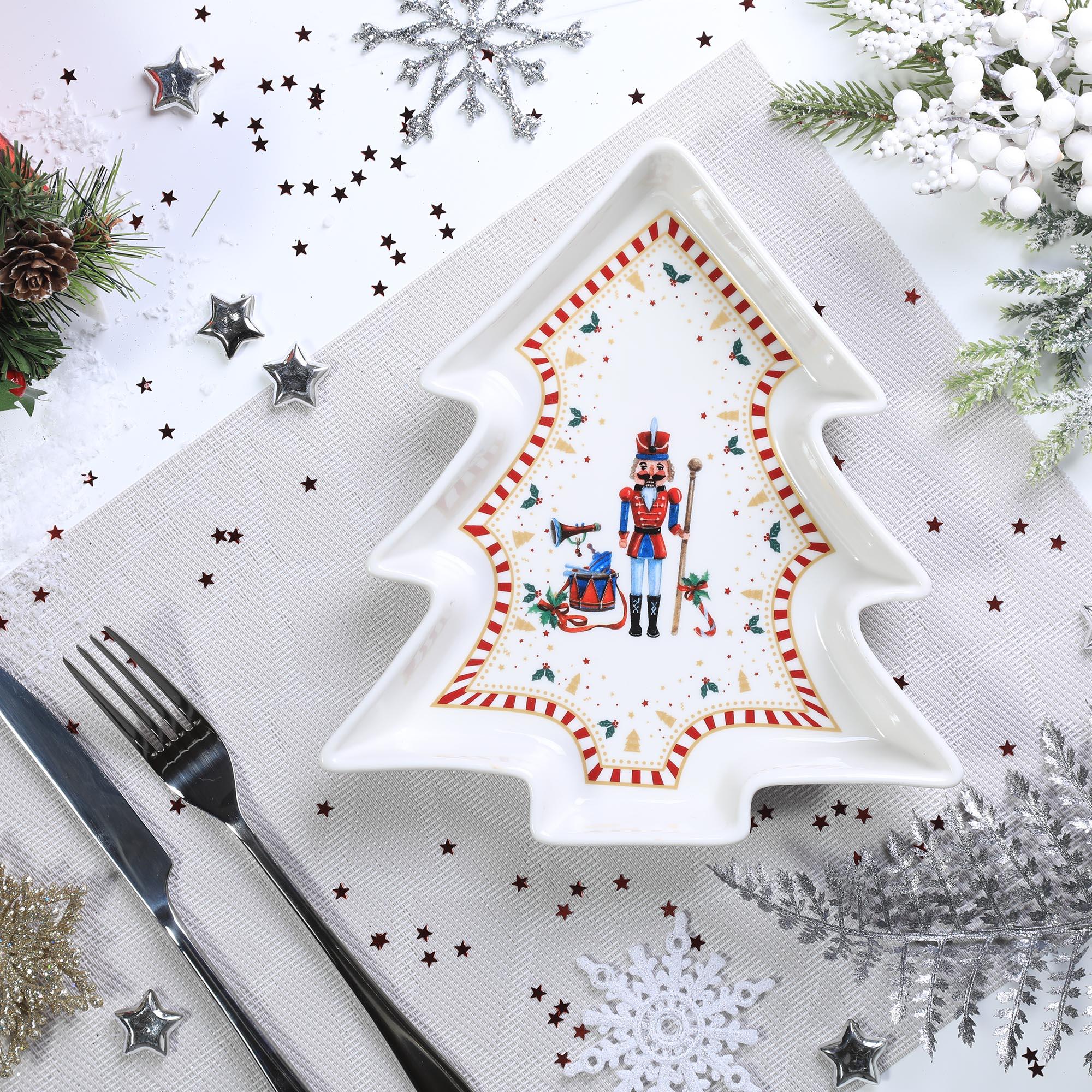 Сервировочное блюдо из новогодней серии White Rabbit с изображенным Щелкунчиком – символом Нового Года, который олицетворяет настоящий дух праздника. Изделия из костяного фарфора являются легкими в уходе и прочными в эксплуатации, тем самым позволят украсить собой не одну торжественную сервировку.