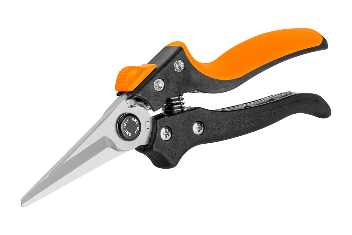 Садовые ножницы FINLAND 1543 имеют рукоятки анатомической формы для оптимального прилегания к поверхности ладони. Покрытие из термопластичной резины уменьшает скольжение. Пружина обеспечивает обратное раскрытие лезвий после выполнения действия. Присутствует фиксатор для безопасной транспортировки. Лезвия – хромированная высокоуглеродистая сталь SK5. Чистый рез. Ручки из нейлона и стекловолокна, одна из ручек с покрытием из термопластичной резины (TPR) Надёжный фиксатор (безопасность в закрытом положении). Гарантия 3 года.