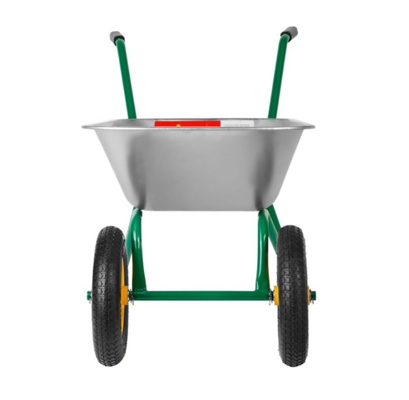 Стальной кузов толщиной 0.7 мм и объемом 80 л для сыпучих грузов имеет цинковое покрытие, обеспечивающее защиту тачки от внешних воздействий.