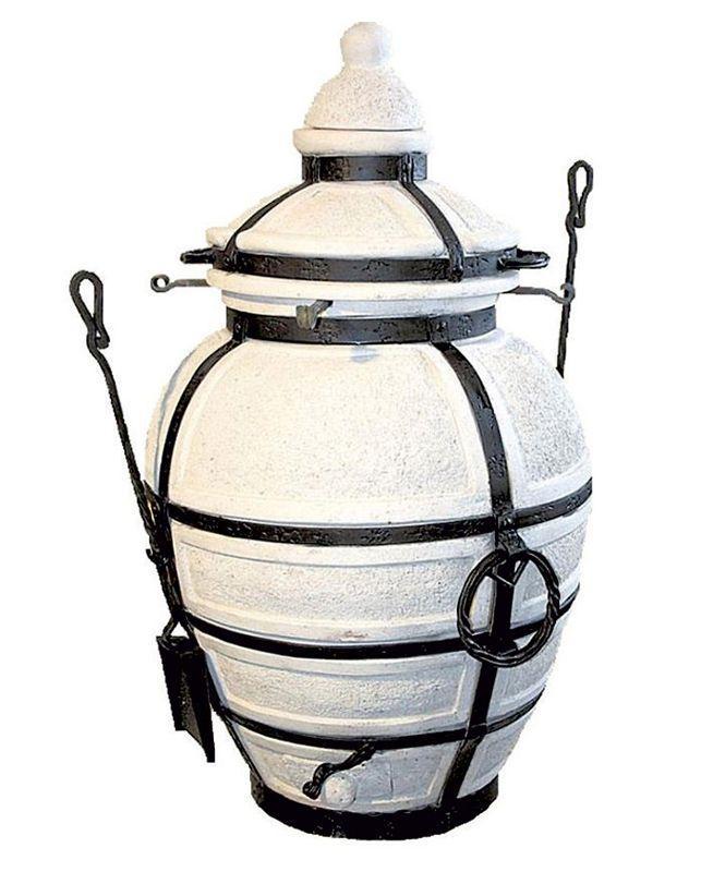 Тандыр "Сармат Большой" строен, красив и хорош собой. Модель отличаетается строгий, минималистичным внешним видов без особых излишеств. Стильные и в то же время прочные кованые конструкции плотно опоясывают корпус. Основные характеристики: мощный торс, позволяющий готовить большие блюда, прочные стенки, отлично сохраняющие тепло, и превышающий центнер. Благодаря форме и размерам, тандыр может быть дополнительно укоплектован четырехъярусной средней этажеркой, крюком (например, для бараньей ноги) или двойным шампуром для кусков нестандартного размера.