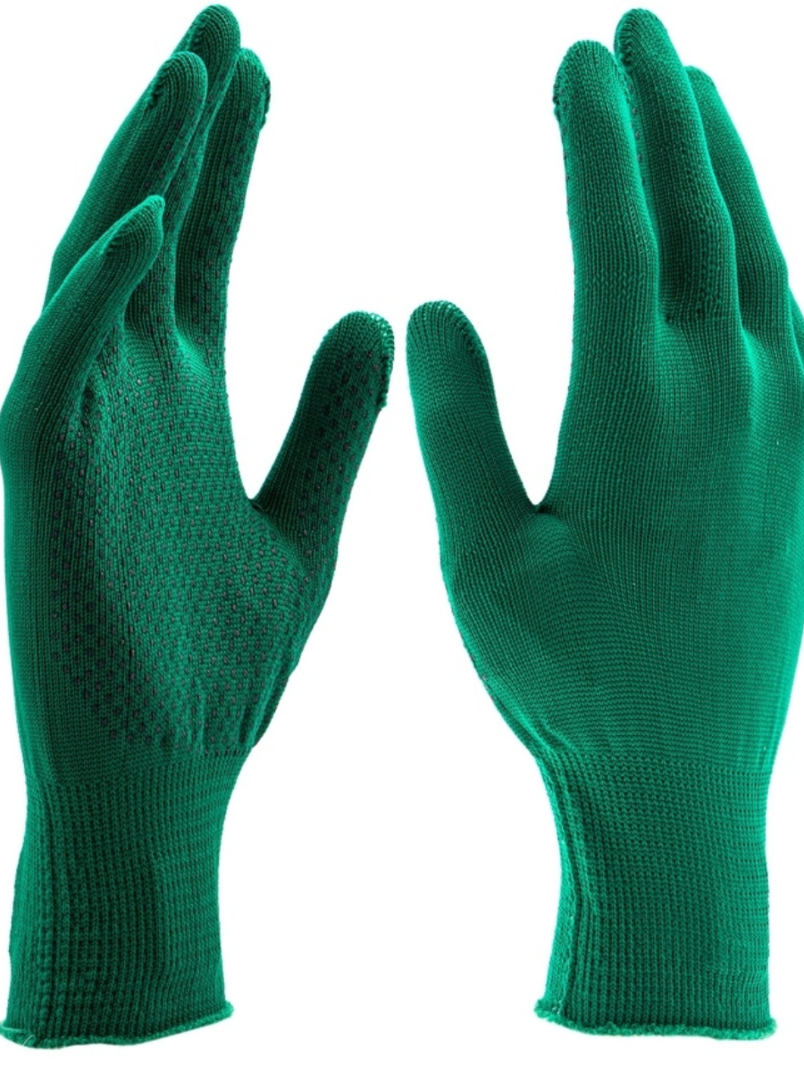 Перчатки из синтетической нити с ПВХ точками класса 13 сочетают в себе превосходную прочность и долговечность, обеспечивая надежную защиту от порезов и других повреждений. Их специальное покрытие ПВХ точками на ладони и пальцах обеспечивает отличное сцепление и контроль, что позволяет вам уверенно выполнять задачи.
