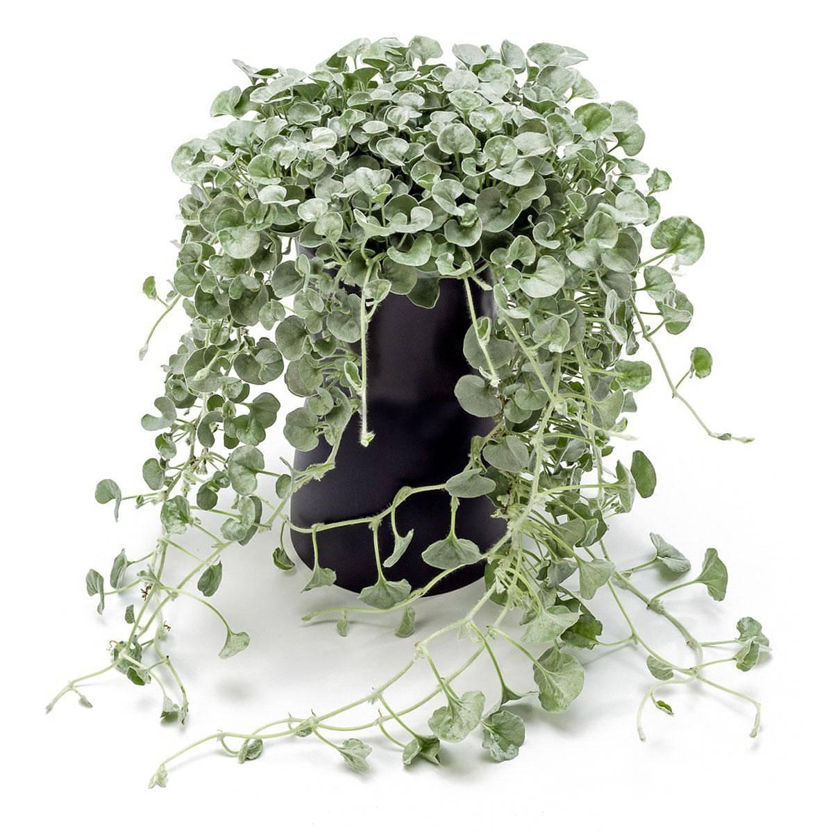 Дихондра серебристая, или ползучая (Dichondra argentea = Dichondra repens) Травянистое вечнозеленое растение, стелющееся и образующее плотный «коврик». Корни поверхностные. Высота растения 10-15см, длина 0,9 - 1,5 м. Это оригинальное вечнозеленое растение помогает в саду создать иллюзию серебристого водопада, озерка или ручья. Именно это свойство растения, а также возможность расти как ампельное, и как почвопокровное растение, привлекает внимание всё новых и новых людей.