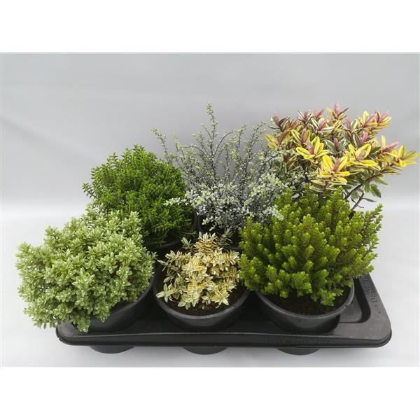 Хебе «Микс» (Hebe in mix) — вечнозеленый многолетний куст для цветочной клумбы, горшка или ящика. Можно выращивать как комнатное растение. Цветет с лета до поздней осени, цветки собраны в компактные, пышные кисти. Сохраняет декоративность в течение всего года. Выдерживает кратковременные морозы до -5-6 °С.