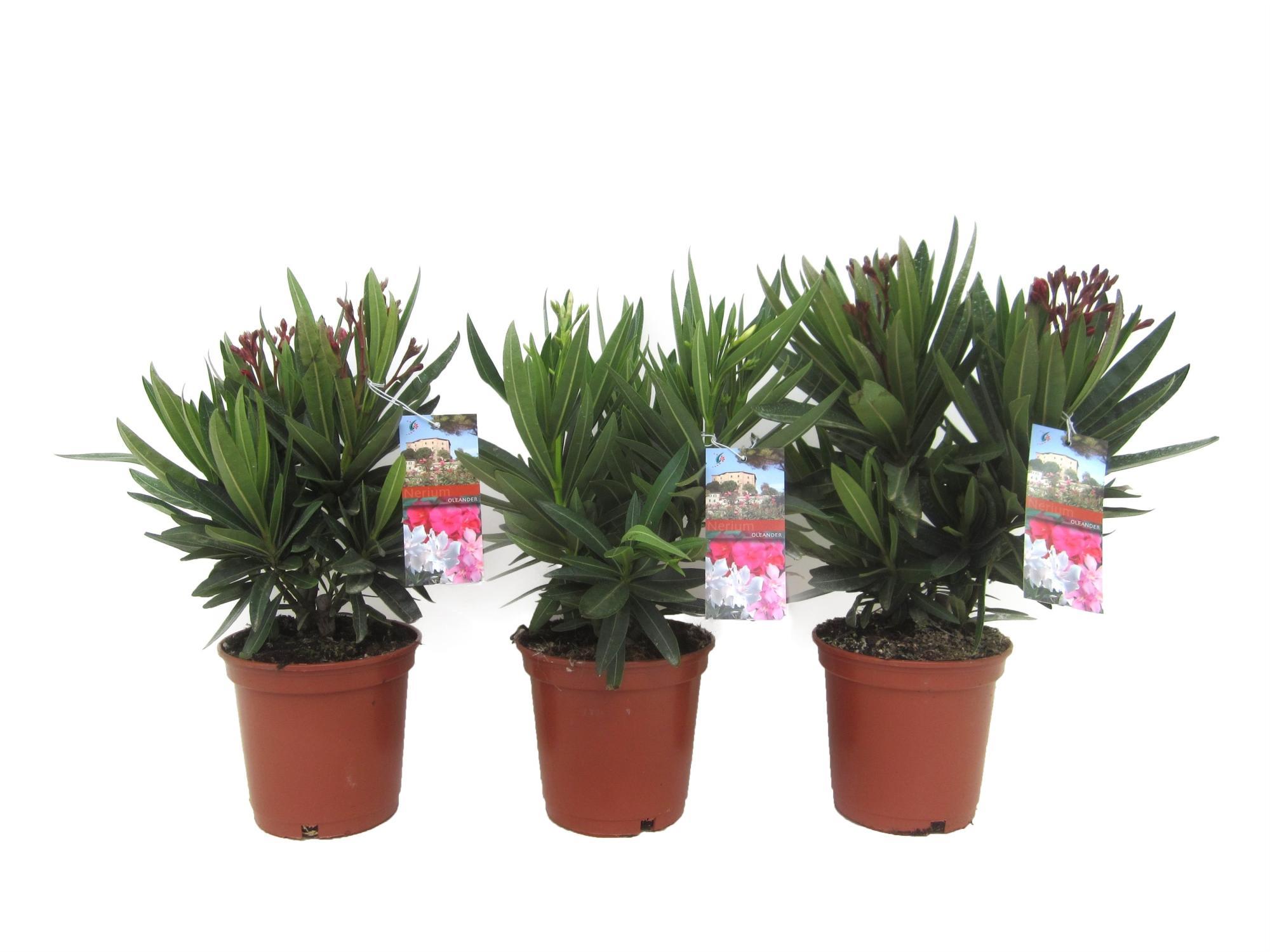 Растение олеандр (Nerium) является представителем семейства Кутровых. По данным, взятым из различных источников, этот род объединяет 3–10 видов. Латинское название такой культуры произошло от греческого слова «nerion», которое переводится как «сырой», либо «влажный». Участок, на котором растет олеандр, должен обладать грунтовыми водами, расположенными достаточно близко к поверхности грунта, вместе с тем данная культура обладает устойчивостью к жаре. В природе она встречается в субтропических областях Средиземноморья. Такой цветок является ядовитым, однако из его листвы добывают вещества, используемые для изготовления лекарственных средств, которые назначают при нарушениях деятельности сердечно-сосудистой системы. Если очень долго вдыхать запах цветков комнатного олеандра, то это может стать причиной появления головных болей. Большие цветки обладают розовым, красным, белым либо желтым окрасом. Наиболее часто в домашних условиях выращивают вид олеандр обыкновенный (Nerium oleander).
