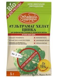 Ультрамаг хелат ЦИНК ДЛЯ ВСЕХ КУЛЬТУР Zn 15% в хелатной форме пакет 5 г. Ультрамаг Хелат Zn-15. Однокомпонентное микроудобрение. Кристаллическое, полностью растворимое в воде микроудобрение на основе хелата Zn для листовой и корневой подкормок сельскохозяйственных и огородных растений, тепличных культур.