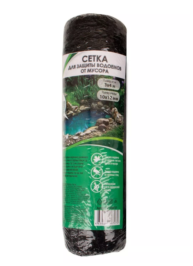 Cетка для защиты водоемов от мусора, 3х4 м, (ячейка 10х12 мм).Сетка предназначена для защиты садовых водоемов от различного мусора - падающих листьев и веток, а также от крупных птиц и т.д. Благодаря ячейкам маленького размера 10х12 мм осенние листья останутся на поверхности водоема и их будет легко убрать, а также уменьшится рост водорослей весной. Сетка не испортит общий вид вашего водоема, так как она практически незаметна. Многоразовое применение. Размер сетки 3 х 4 м.
